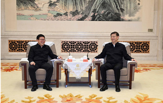 On March 21, Liao Jiasheng, Secretary of the Party Committee and Chairman of CECEP, met with Xu Kunlin, Deputy Secretary of the Jiangsu Provincial Party Committee and Governor of Jiangsu Province, in Nanjing. The two sides held in-depth discussions on deepening strategic cooperation and advancing green and low-carbon development in Jiangsu.