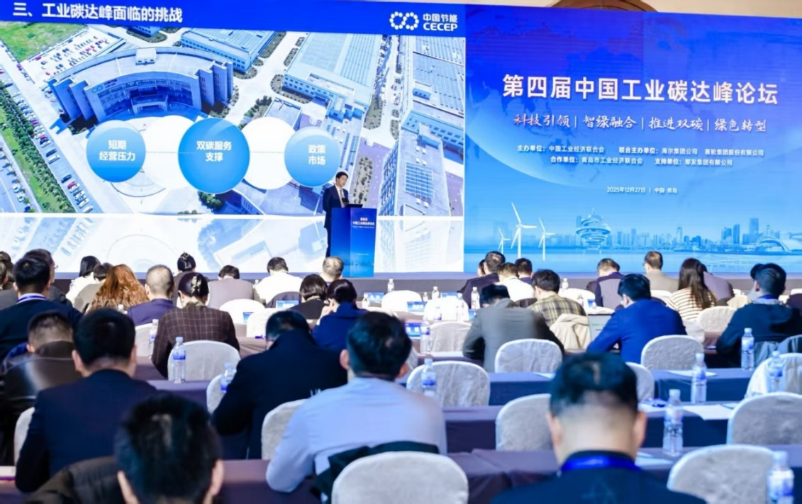 On December 27, the China Federation of Industrial Economics held the Fourth China Industrial Carbon Peak Forum in Qingdao, at which CECEP was included in the 2025 China’s Top Runner for Industrial Carbon Peaking list. Du Le, Deputy General Manager of CECEP, attended the forum by invitation and delivered a keynote speech.