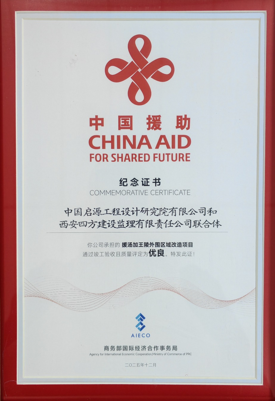 On December 4, the 2025 Experience Exchange on Complete Sets and Technical Assistance Foreign Aid Projects, hosted by the Agency for International Economic Cooperation (AIECO) of the Ministry of Commerce (MOFCOM), was held in Beijing. Four overseas foreign aid projects undertaken by CECEP subsidiary China Qiyuan Engineering Corporation (CQEC) passed a rigorous review and collectively received MOFCOM’s China Aid for Shared Future certification.