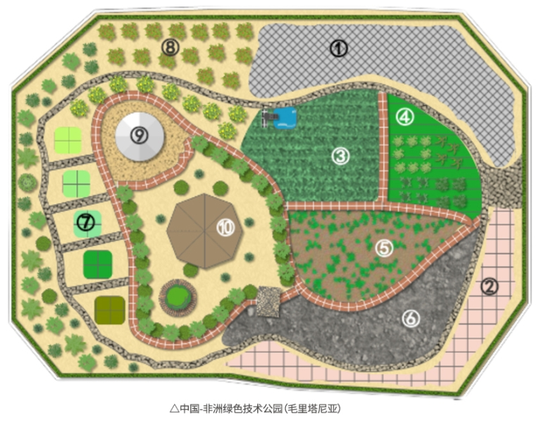 The China-Africa Green Technology Park (Mauritania) project is an important initiative to deepen the implementation of President Xi Jinping's keynote speech at the opening ceremony of the 8th Ministerial Conference of the Forum on China-Africa Cooperation. It supports the construction of the Great Green Wall of Africa and serves as a significant platform for the development of a China-Africa community with a shared green future. The park is located in Nouakchott, the capital of Mauritania in West Africa, covering an area of 100 mu (approximately 6.67 hectares). It includes zones for sand blocking and fixation technologies, water-saving irrigation technologies, soil improvement technologies, and plant introduction and breeding. The park provides an advantageous and promising platform for the promotion and application of excellent Chinese desertification control products, technologies and enterprises in the construction of the Great Green Wall of Africa.