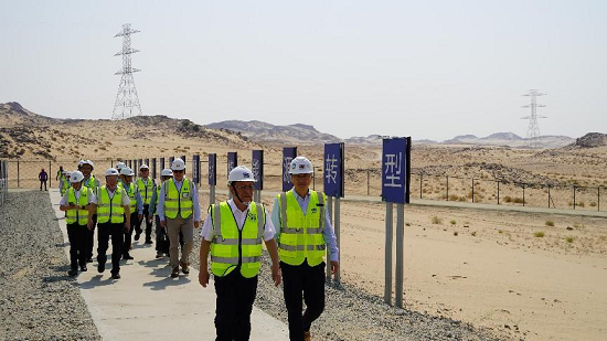 During the visit, Song Xin inspected several work sites, including project offices, the Ras Al Khair asphalt plant, the Abyam steel structure factory, and extended greetings to both Chinese and foreign employees. He also visited the Saudi solar project by China Energy Engineering Group Co., Ltd. to discuss cooperation.